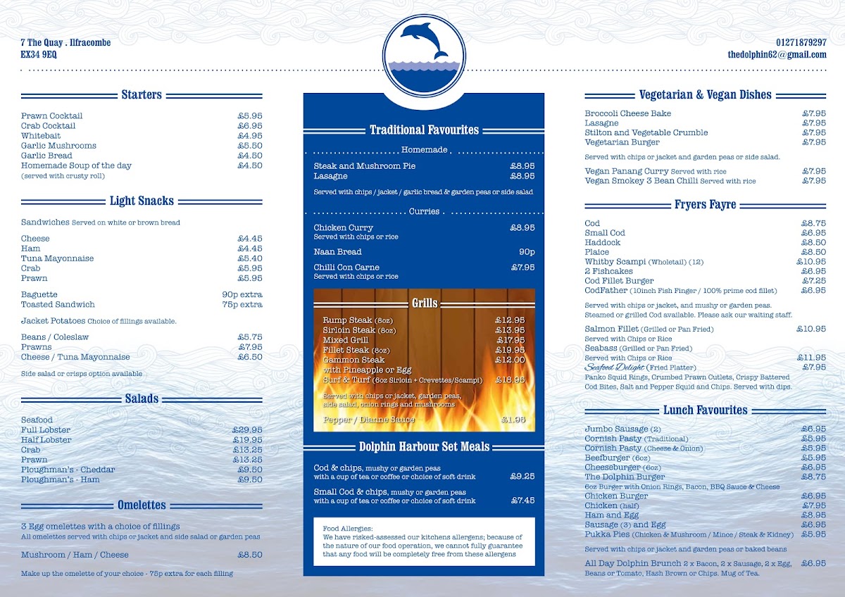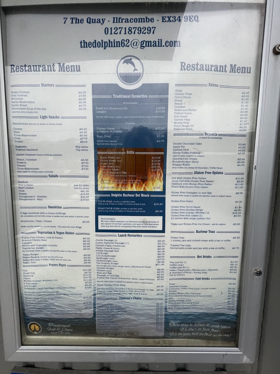 Welcome to The Dolphin Restaurant & Takeaway Ilfracombe, a charming spot located at 7 The Quay, Ilfracombe. This hidden gem offers a delightful menu that caters to a variety of palates, ensuring something for everyone. Enthusiastic feedback highlights their standout dishes, including a superb salmon praised for its freshness and a vegan curry renowned for its exquisite sauce.